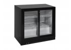 Barový chladicí stůl - 0,9 m - 220L- se 2 skleněnými dveřmi & 2 policemi - exteriér & interiér černý