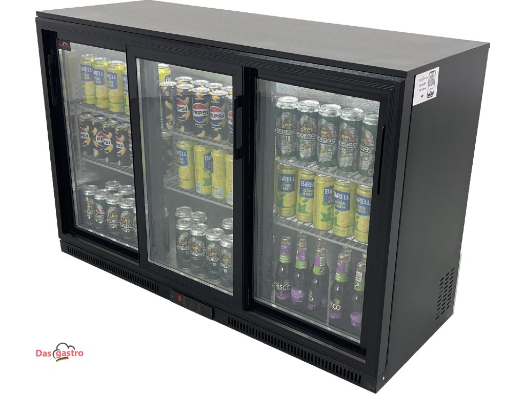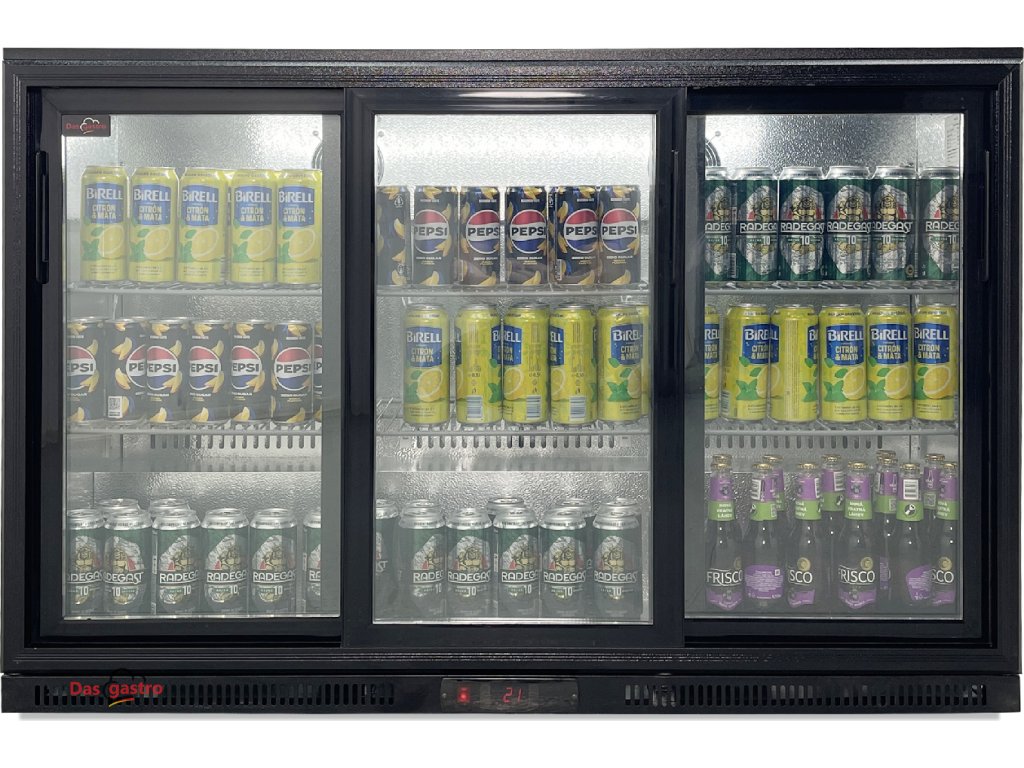 Barová lednice - 1350 x 540 x 900 mm, se 3 skleněnými dveřmi a 2 policemi - černá