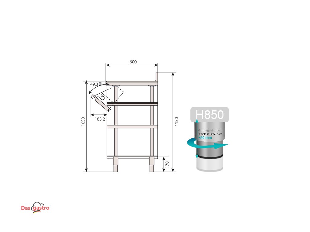 - Außenmaß B x T x H: 820 mm x 600 mm x 1.150 mm