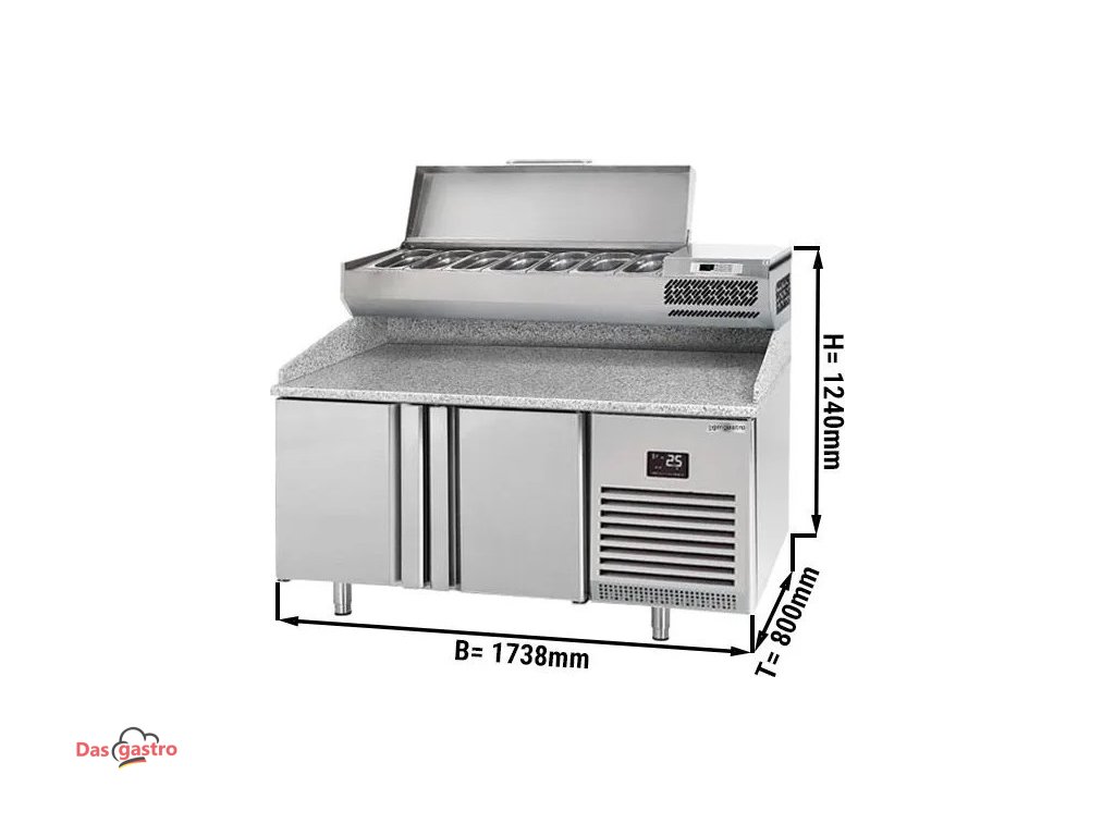 Commercial Refrigerated Pizza Prep Counter Premium PLUS - 1783x800 - 2 Doors - Top Display Rail - 7x GN 1/4