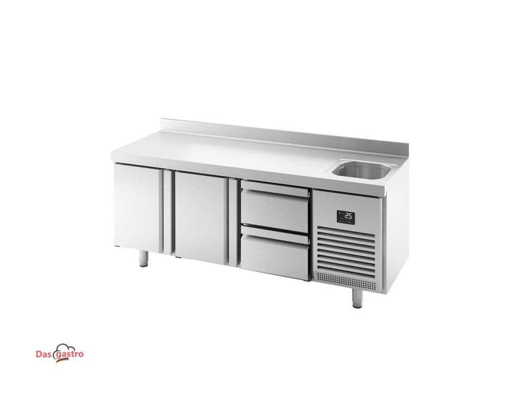 Chladicí stůl PREMIUM PLUS - 1960x700x950 mm - 465 l - s 1 mísami - s 2 dveřmi - s 2 zásuvkami - se zadním lemem