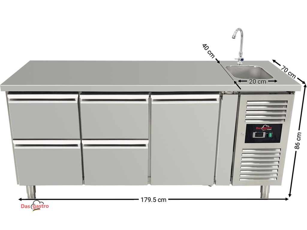 Chladicí stůl s dřezem - 4 šuplíky a 1 dvířky vpravo