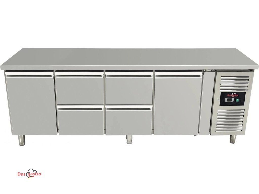 Chladicí stůl se 2 dvířky po stranách a 4 zásuvkami uprostřed