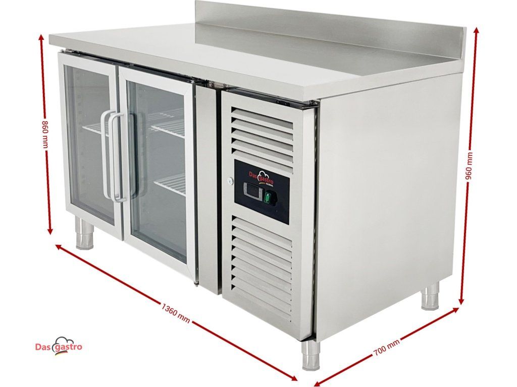 Chladicí stůl se 2 skleněnými dvířky a zadním lemem