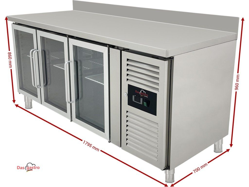 Chladicí stůl se 3 skleněnými dvířky a zadním lemem