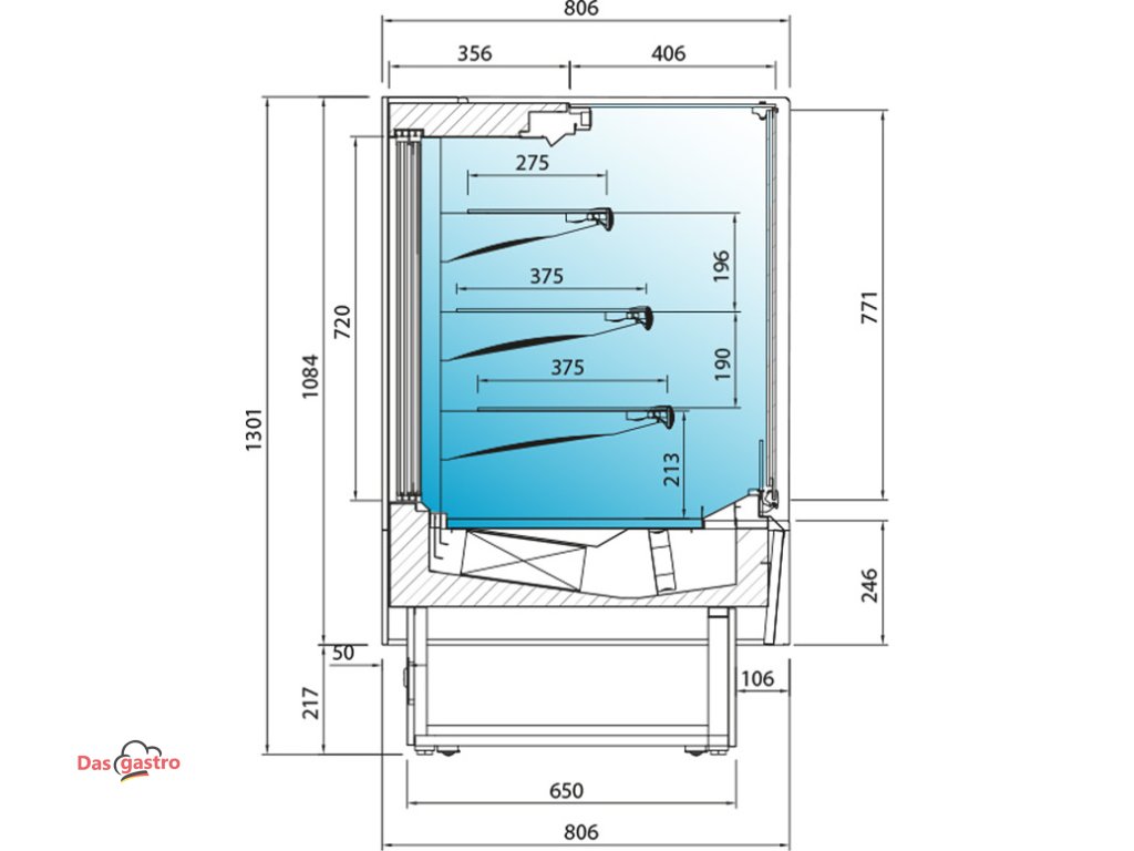 Cukrárenský pult - 0,98 x 0,81 m - 3 police