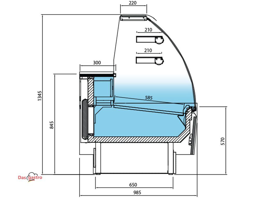 Cukrárenský pult - 1622x985x1345 mm - 271 l - s 2 dveřmi - s 2 policemi