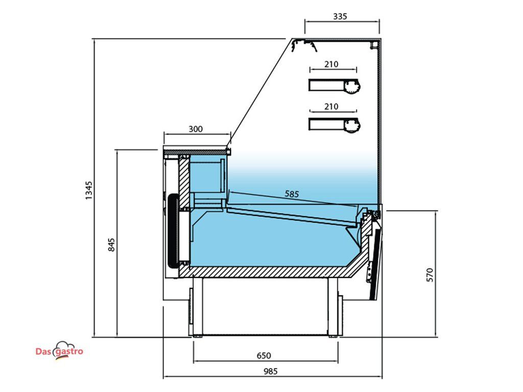 Cukrářská vitrína - 1935x985x1345 mm - 3590 l - s 3 dveřmi - s 2 policemi