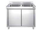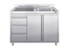 Dřezová skříňka s odpadkovým košem - 1,2 m - 1 dřez vlevo - s obkladovým panelem & křídlovými dveřmi