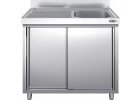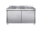 Dřezová skříňka s odpadkovým košem - 1,4 m - 2 dřezy vlevo - s obkladovým panelem & posuvnými dveřmi