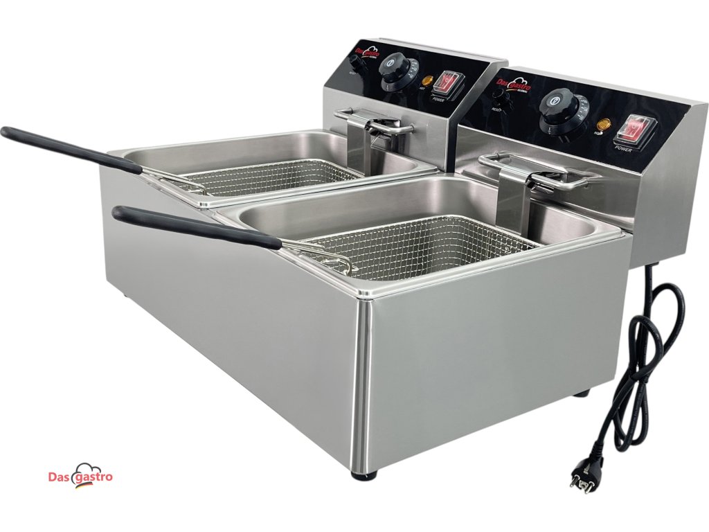 Spolehlivá elektrická fritéza se dvěma samostatnými vanami, každá o objemu 6 litrů, je navržena pro každodenní použití v gastro provozech, kde je potřeba připravovat více druhů smažených pokrmů najednou – rychle, efektivně a bezpečně. Ideální volba pro restaurace, bistra, stánky i food trucky. Nabízí jednoduchou obsluhu, snadnou údržbu a vysoký výkon.