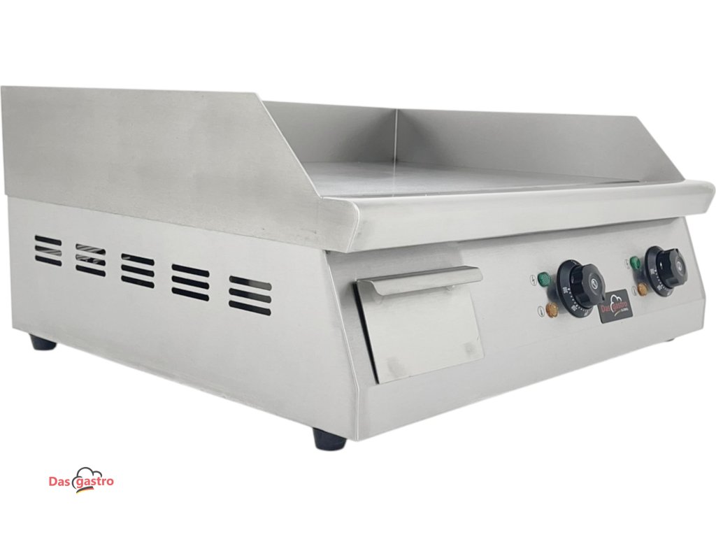 Hledáte spolehlivý a výkonný gril pro profesionální kuchyň? Elektrický gril s hladkou grilovací deskou o šířce 61 cm je ideální volbou pro gastro provozy, kde se klade důraz na rychlost, přesnost a hygienu. Díky plynulé regulaci teploty v rozsahu 50 až 300 °C poskytuje maximální kontrolu nad přípravou pokrmů – od jemného opečení po intenzivní grilování.