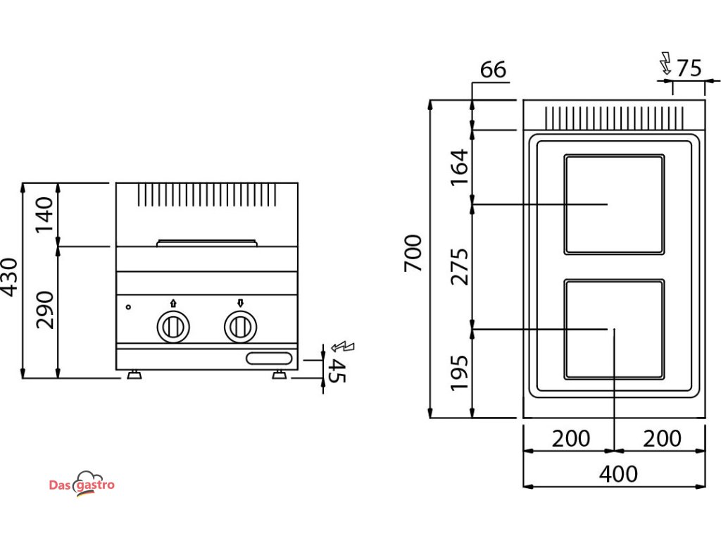 Elektrický sporák 2x plotýnka čtvercová (5,2 kW)