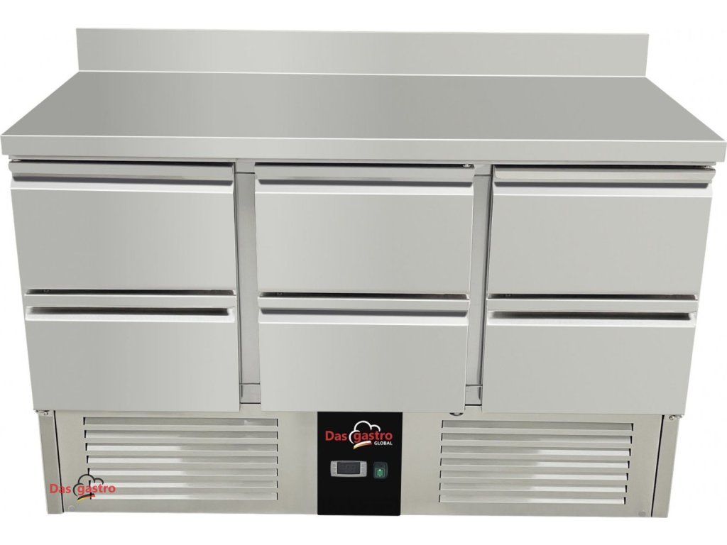Cooling table / preparation table 1.37 mx 0.7 m - with 6 drawers and rear edge