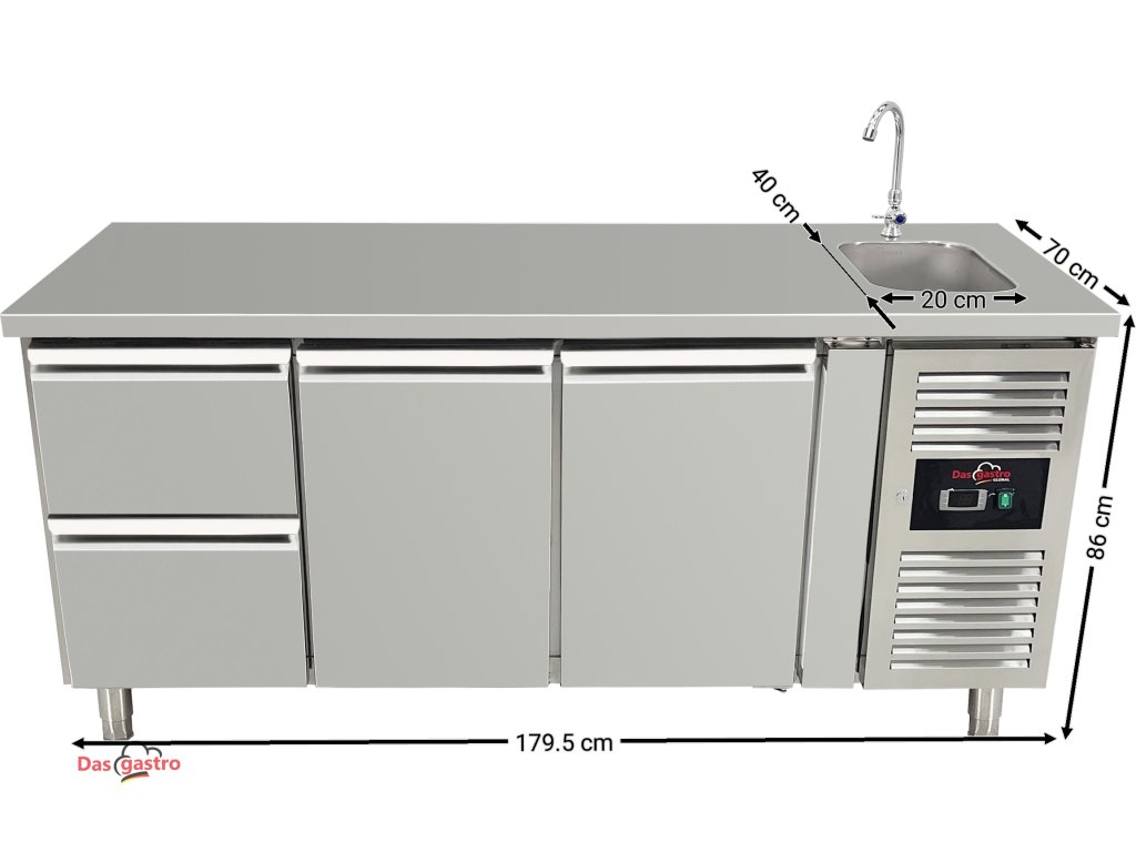 Refrigerated table with sink - 2 doors and 2 drawers on the left