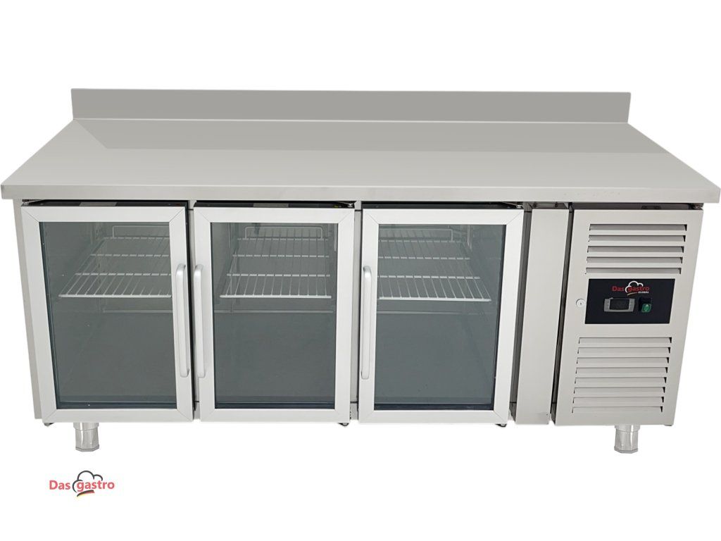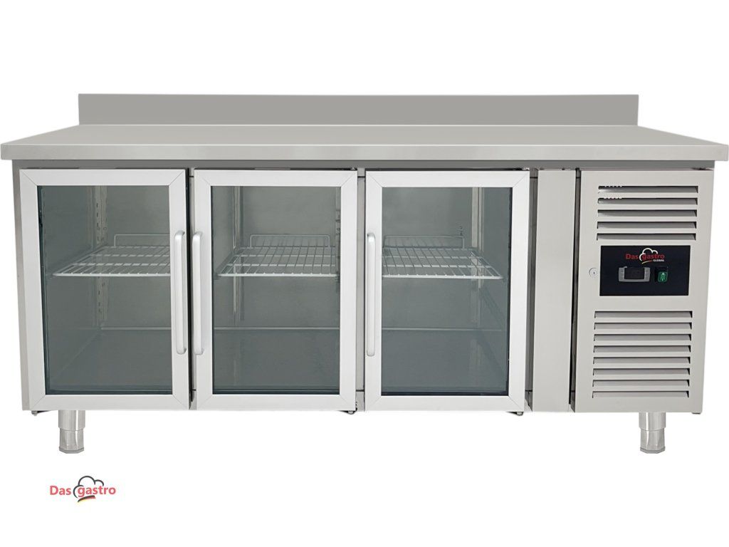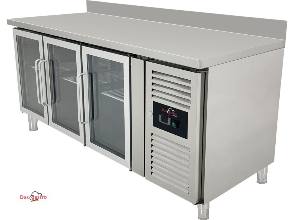 Refrigerated table with 3 glass doors and rear rim