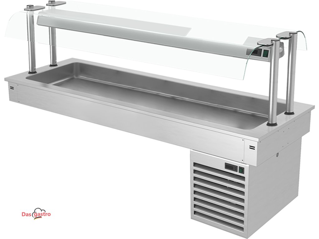 Refrigerated Drop-In Well - Built-In/Integrated Appliance - 1.8m - +2~+8°C - 5x GN 1/1 - With Glass Sneeze Guard