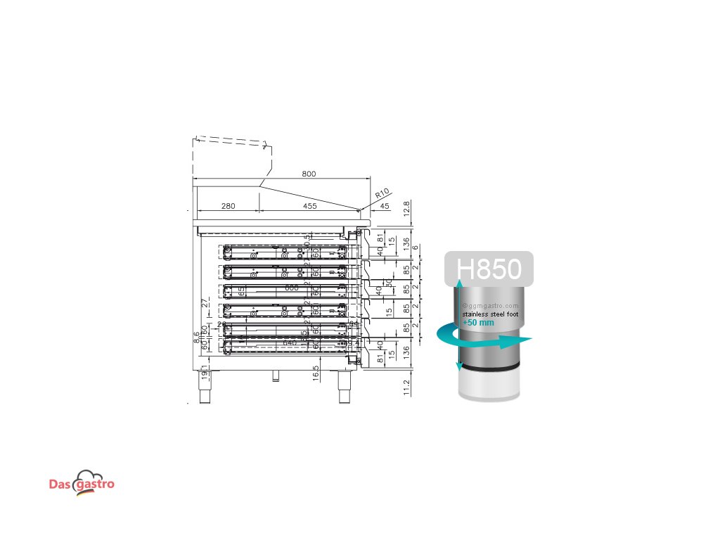 - Top-mounted display case: for example 10 x GN 1/3 Container, GN 1/2, GN 1/4 also possible