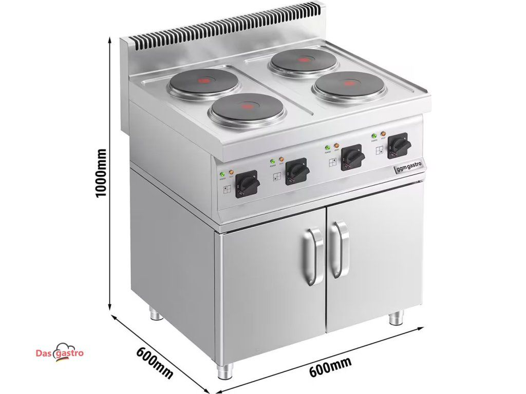Electric cooker - 4x plates round (8 kW) - incl. base with 2 doors