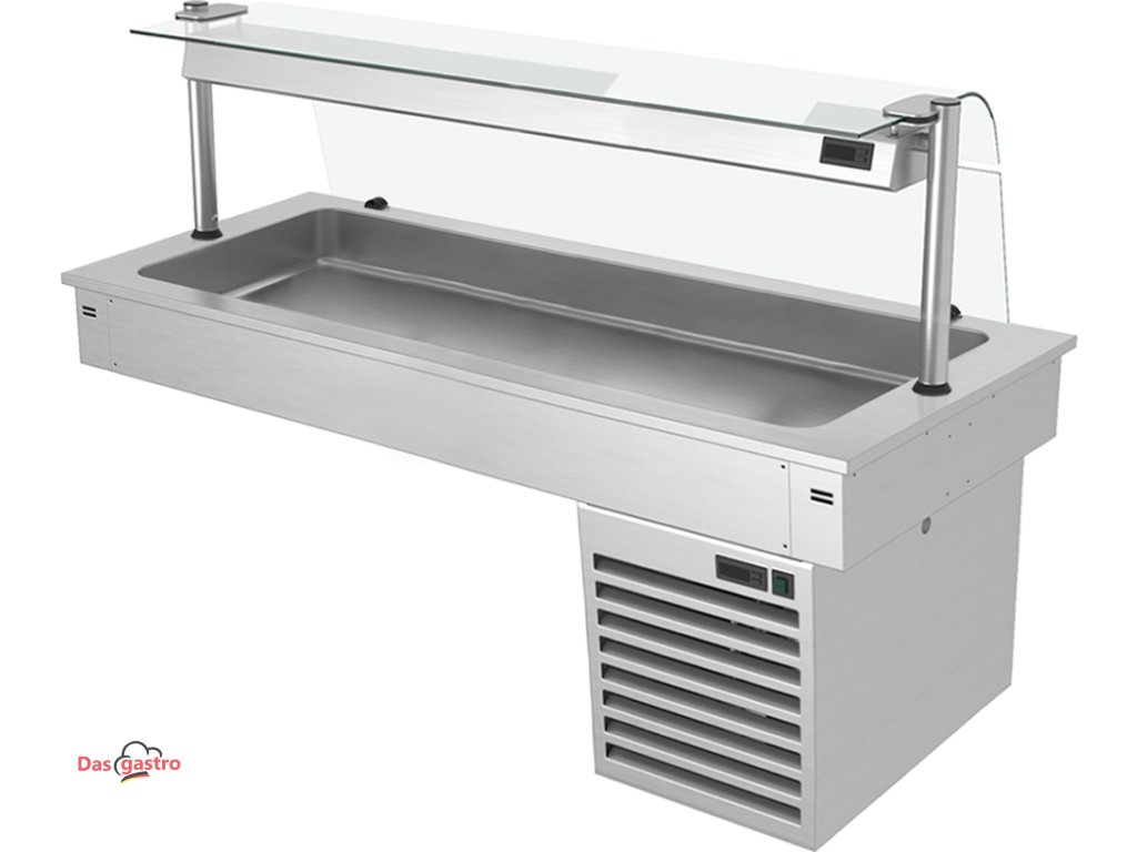 Refrigerated Drop-In Well - Built-In/Integrated Appliance - 1.5m - +2~+8°C - 4x GN 1/1 - With Glass Sneeze Guard