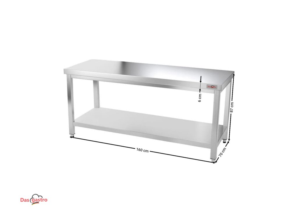 Stainless steel workbench for professional operations. Stable construction, easy maintenance and a practical bottom shelf make it an ideal choice for gastro kitchens, preparation rooms and back offices.
