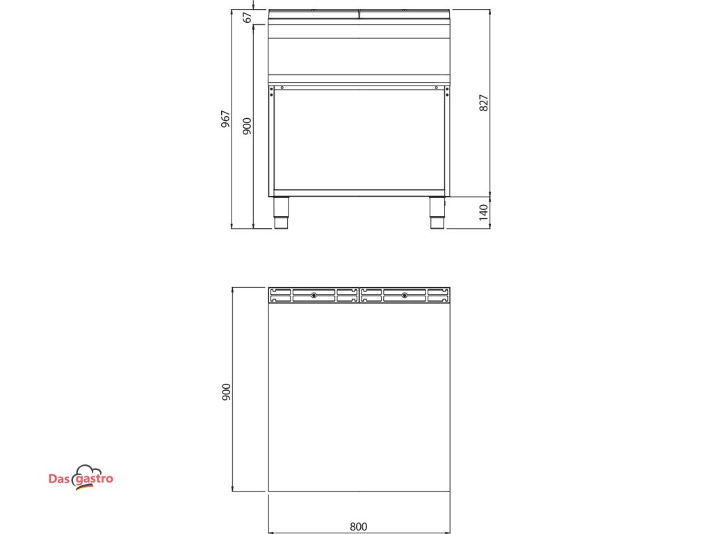 - Outer dimensions W x D x H: 800 mm x 900 mm x 967 mm