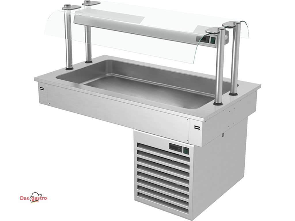 Refrigerated Drop-In Well - Built-In/Integrated Appliance - 1.1m - +2~+8°C - 3x GN 1/1 - With Glass Sneeze Guard