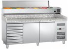 Pizza cooling table PREMIUM - 2000x800mm - with 2 doors & 7 drawers - incl. refrigerated display case - 10x GN 1/4