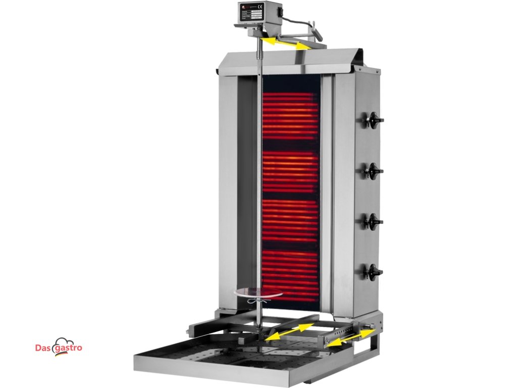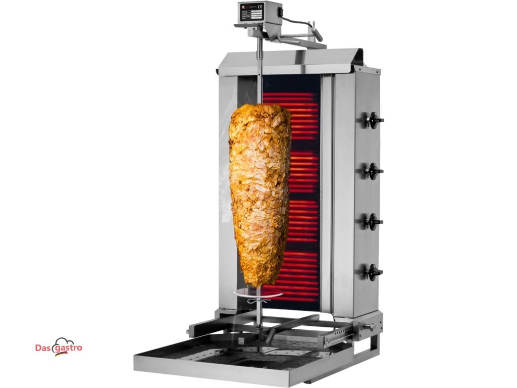 Gril na gyros/kebab - 4 hořáky (pohyblivé) - max. 60 kg - vč. křídlových dvířek
