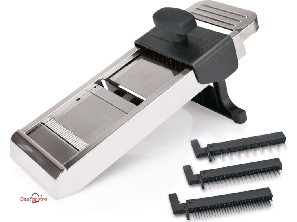 - Struhadlo mandolína s vroubkovaným nožem a držákem na zbytky
