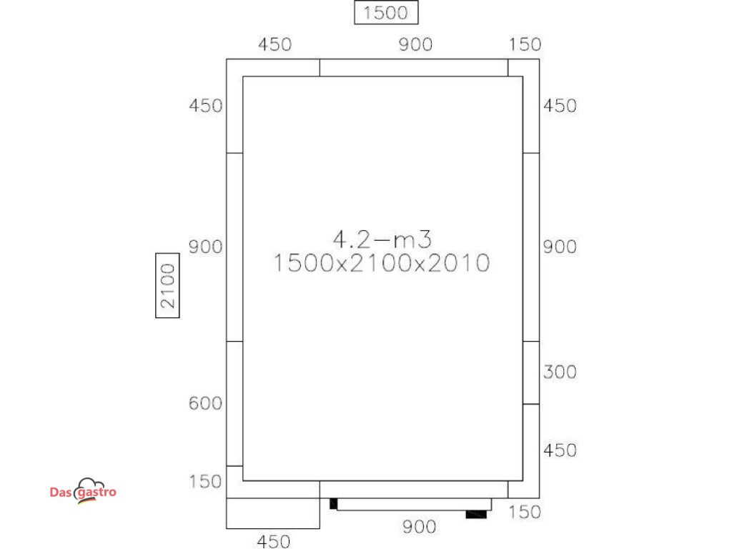 - Außenmaß B x T x H: 1.500 mm x 2.100 mm x 2.010 mm