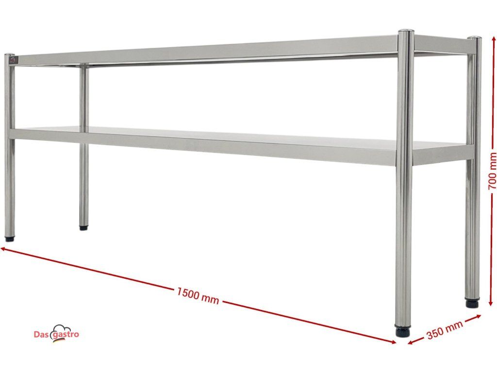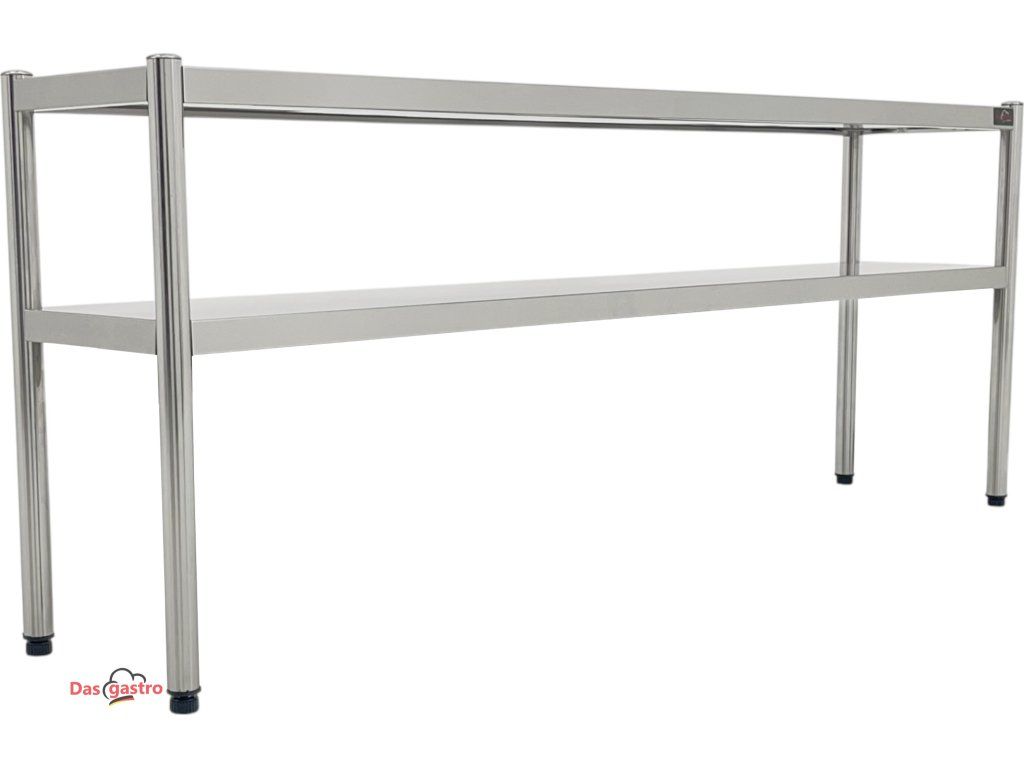 Funkční a robustní nástavná police určená pro profesionální kuchyně a gastronomické provozy. Ideální pro instalaci nad pracovní stoly, kde umožňuje přehledné a hygienické uskladnění nádobí, surovin či pomůcek. Dvoupolicové provedení zvyšuje využitelný prostor bez omezení pracovní plochy.
