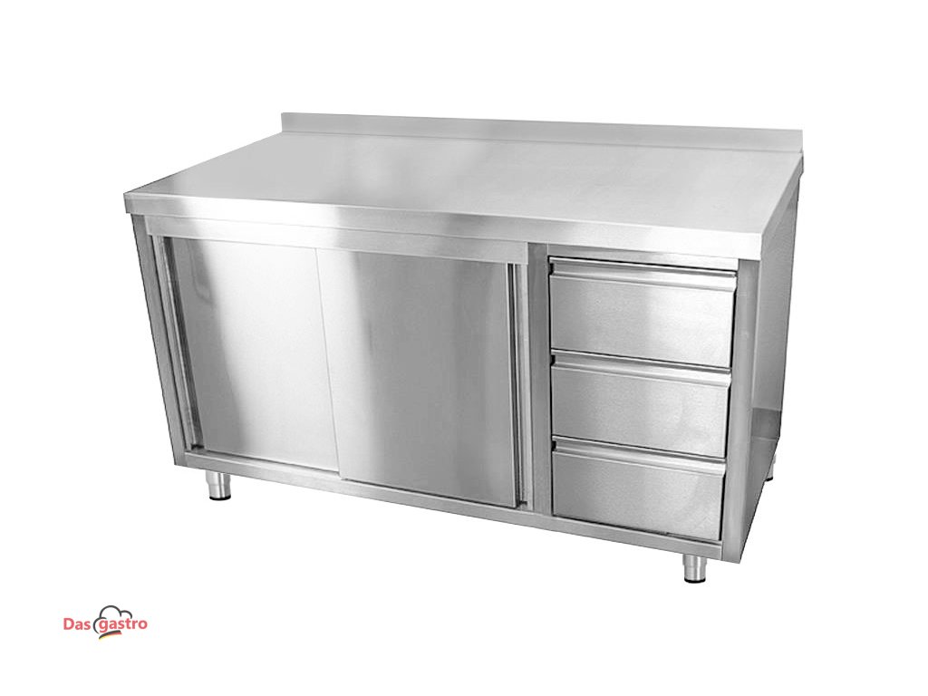 Pracovní skříňka ECO z nerezové oceli - 1,4 m - se 3 šuplíky vpravo a obkladovým panelem
