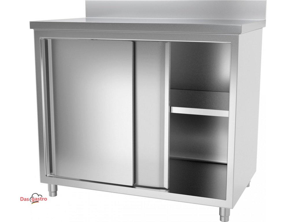 Pracovní skříňka PREMIUM z nerezové oceli - 1,0 m - s posuvnými dveřmi & obkladovým panelem