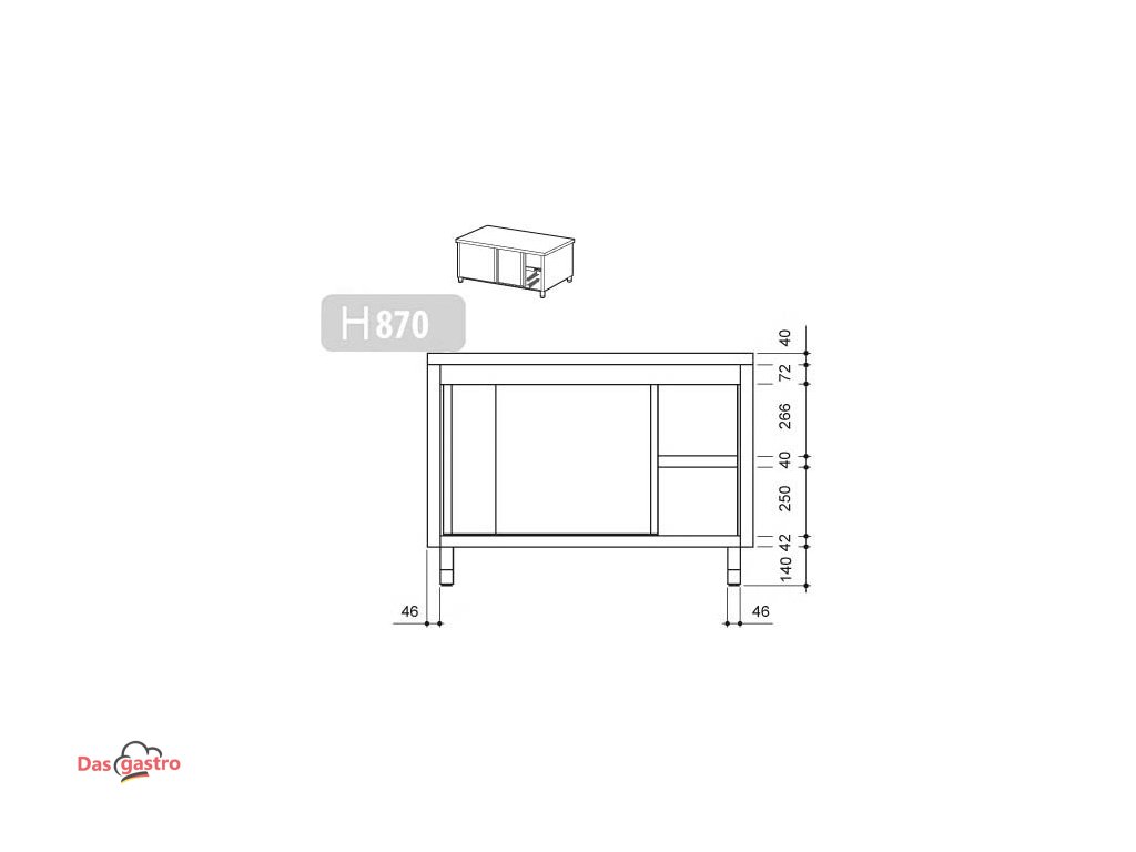 - Außenmaß B x T x H: 1.000 mm x 700 mm x 870 mm