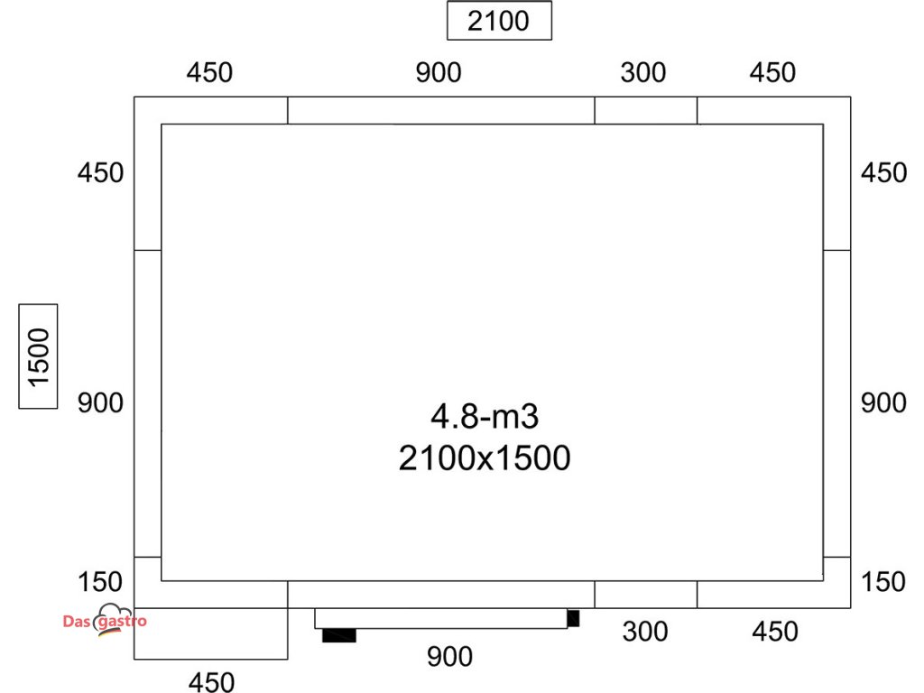 - Außenmaß B x T x H: 2.100 mm x 1.500 mm x 2.010 mm