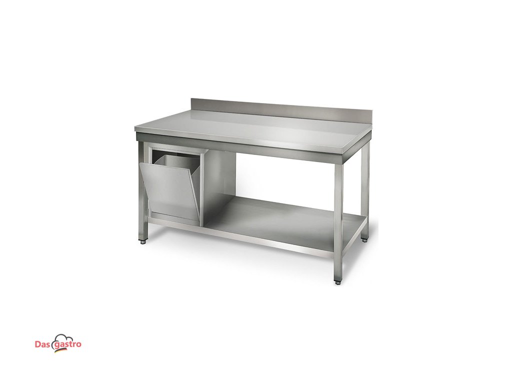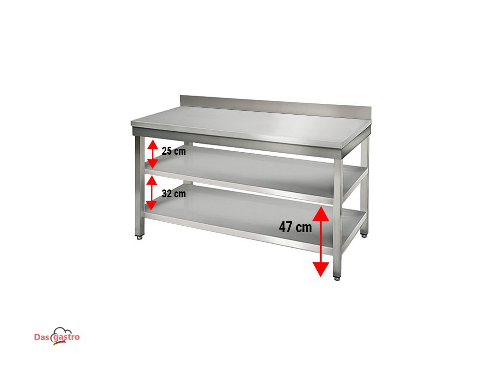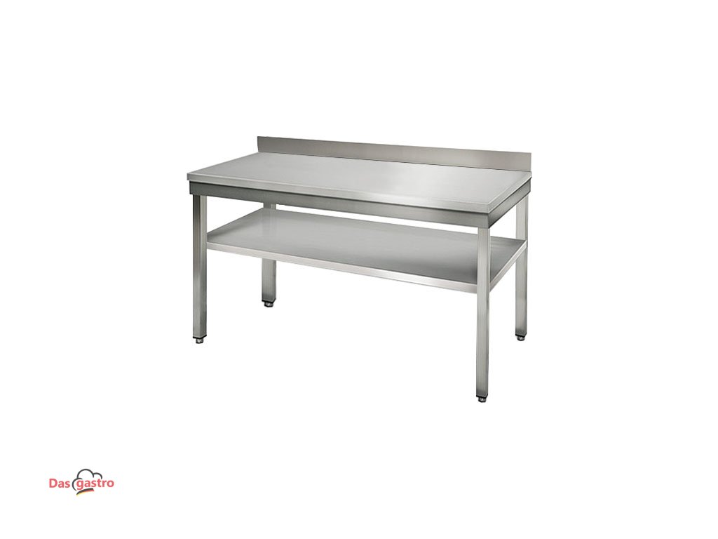 Nerezový pracovní stůl ECO - 1,4 m - s podstavcem & obkladovým panelem