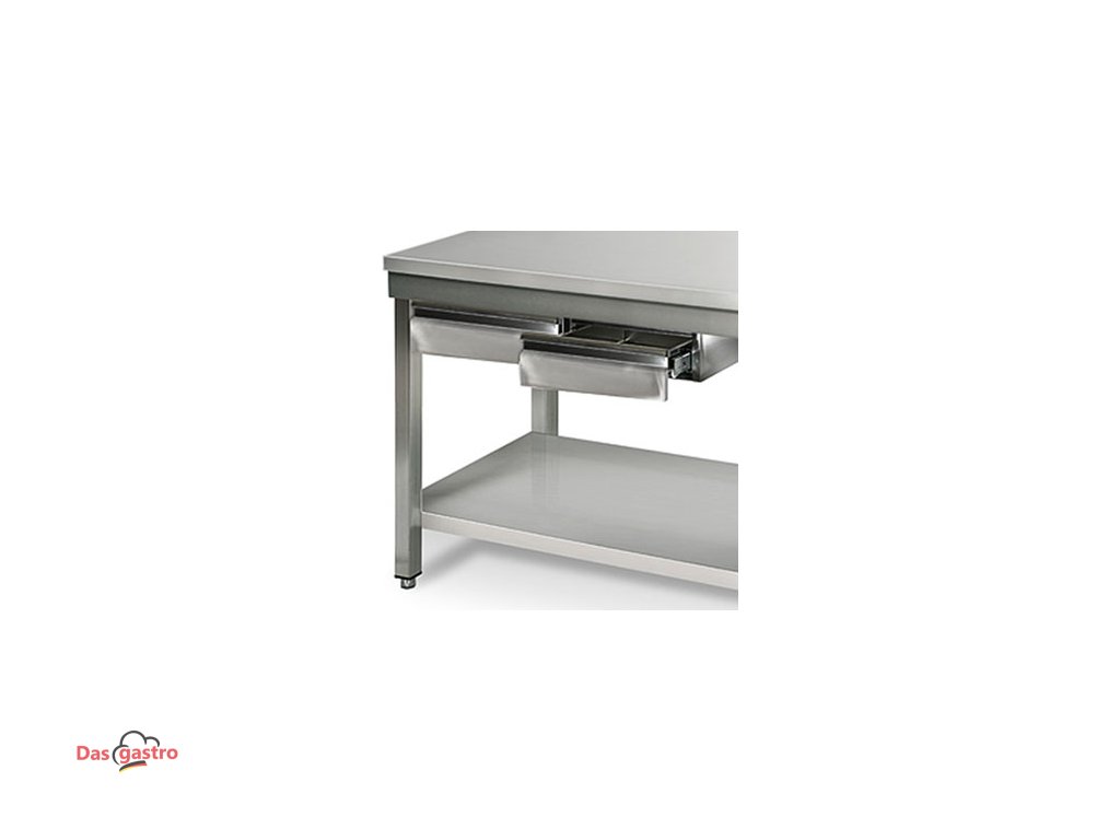 Nerezový pracovní stůl ECO - 0,7 m - se spodní policí & obkladovým panelem