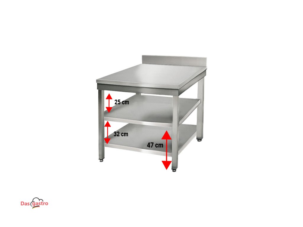 Nerezový pracovní stůl ECO - 0,8 m - se spodní policí & obkladovým panelem