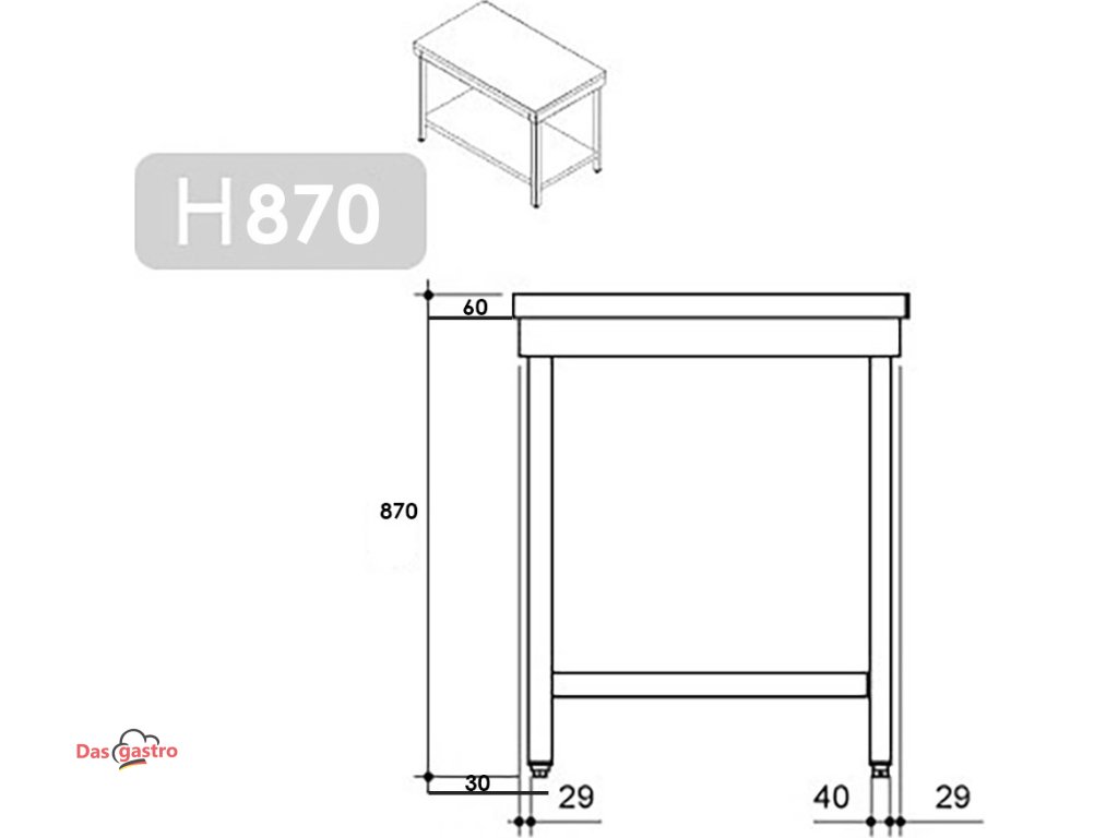 - Ideální pracovní výška o 870 mm