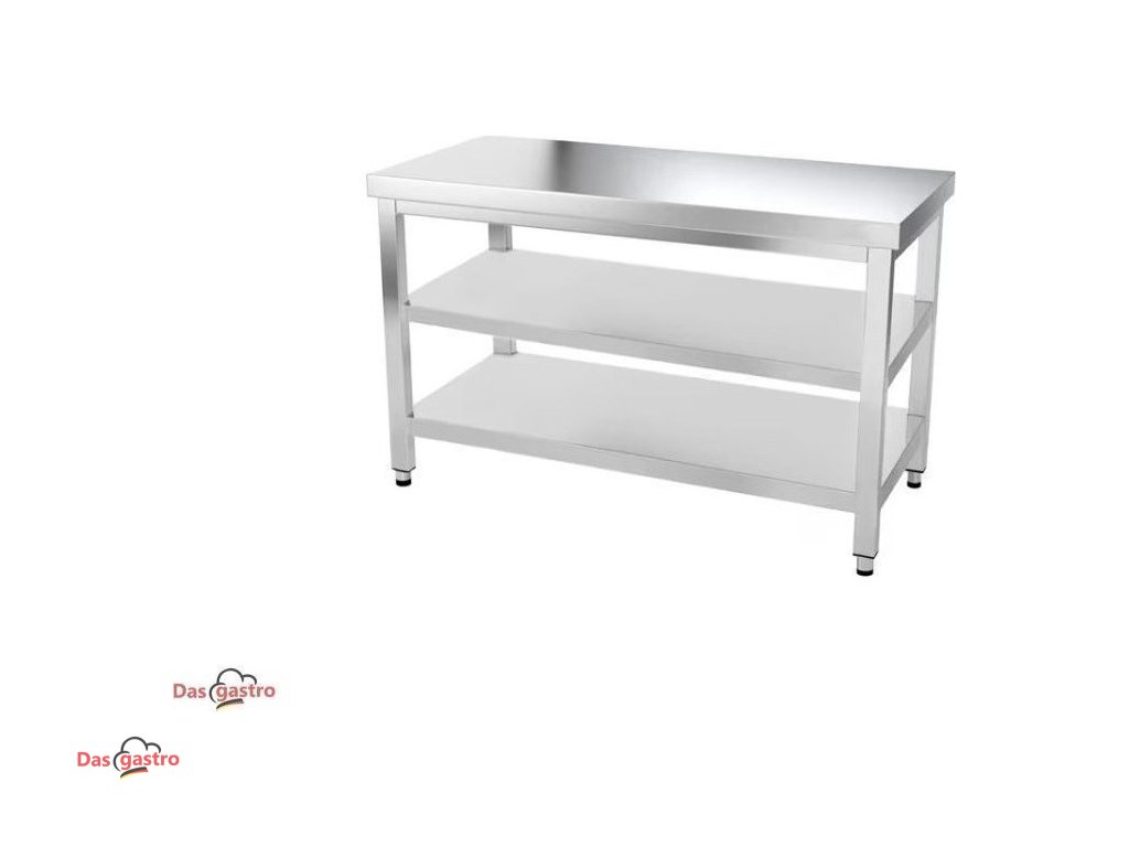 Nerezový pracovní stůl PREMIUM se dvěma policemi bez zadního lemu 1,2 m