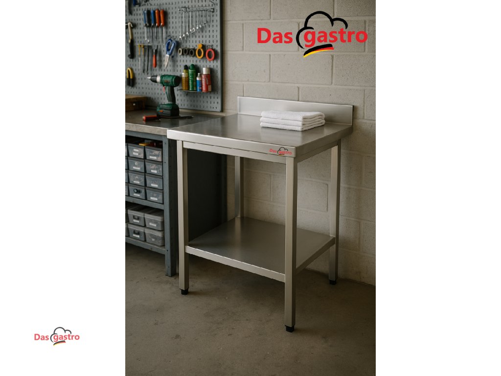 Nerezový pracovní stůl pro profesionální provozy. Stabilní konstrukce, snadná údržba a praktická spodní police z něj dělají ideální volbu do gastro kuchyní, přípraven i zázemí.