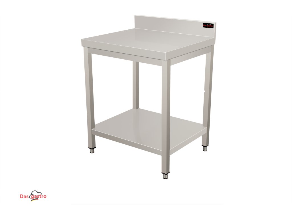 Nerezový pracovní stůl PREMIUM se spodní policí a zadním lemem 0,6 m