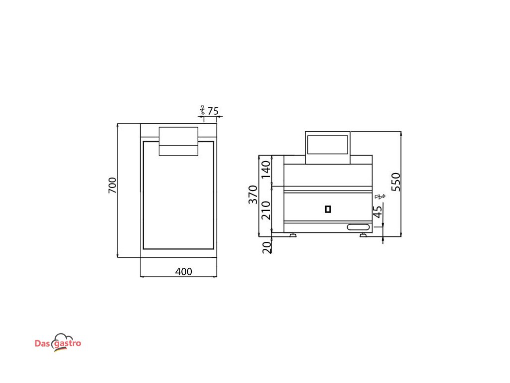 - Outer dimensions W x D x H: 400 mm x 700 mm x 1.000 mm
