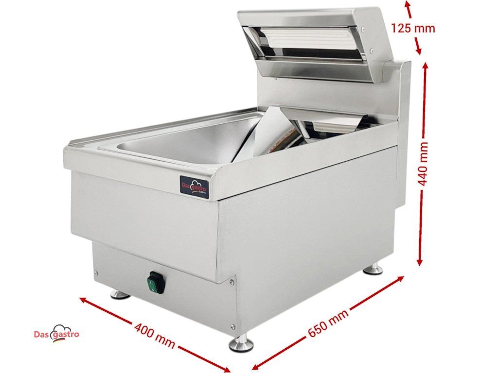 Profesionální ohřívač hranolek GN 1/1 je určen pro restaurace, fast foody, bistra i jídelny. Slouží k udržování optimální teploty hranolků a dalších smažených pokrmů před jejich výdejem. Díky kombinaci horního a spodního ohřevu pomáhá udržet pokrmy teplé bez zbytečného vysušování a umožňuje rychlý a plynulý servis během špičky.