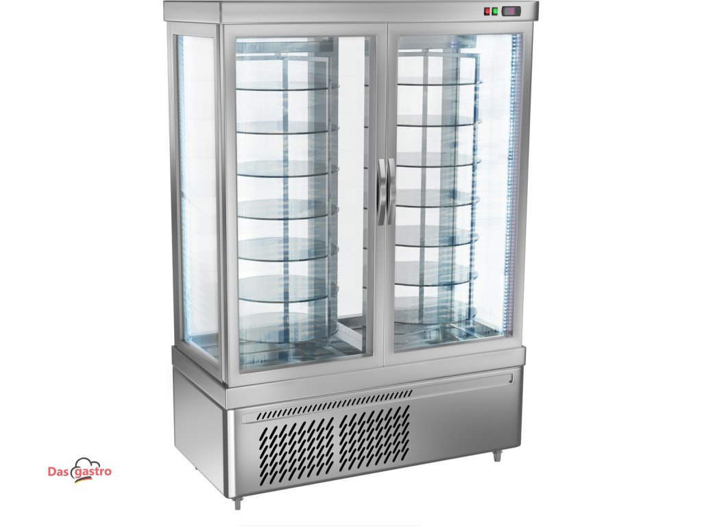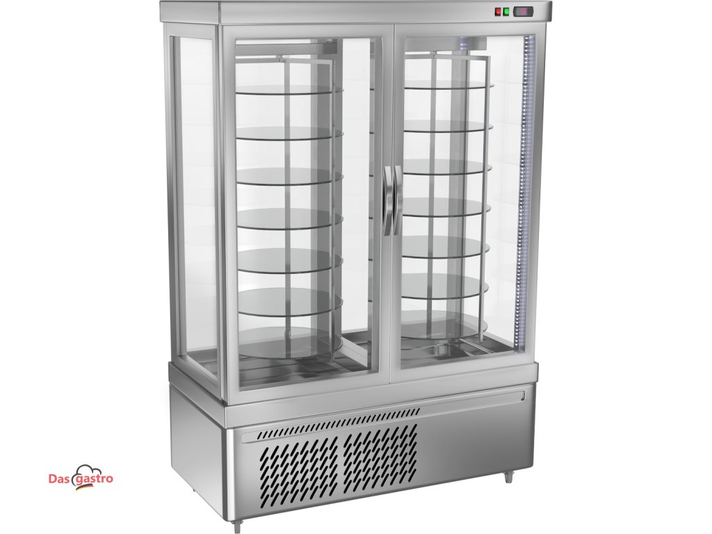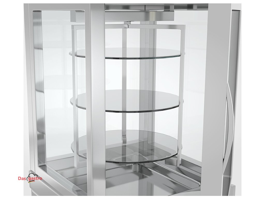 Panoramatická vitrína se 14 otočnými skleněnými policemi