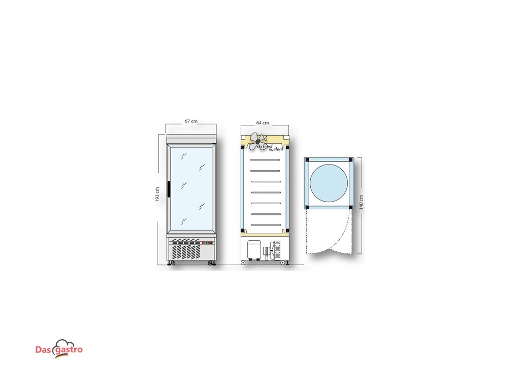 - Outer dimensions W x D x H: 670 mm x 640 mm x 1.930 mm