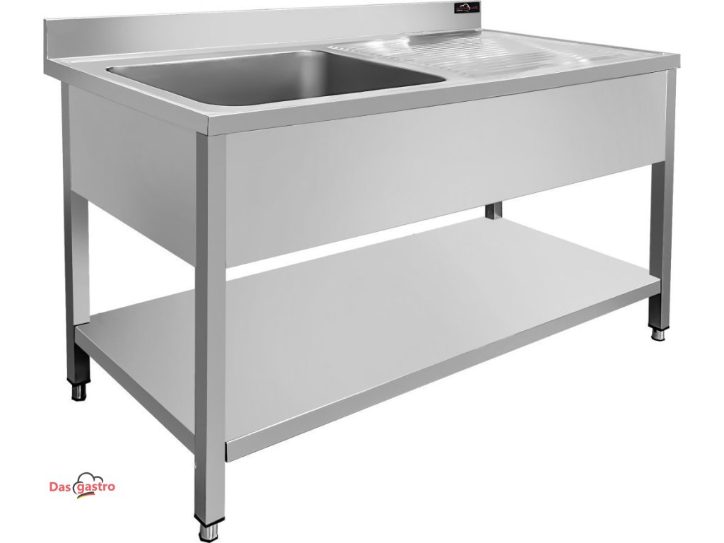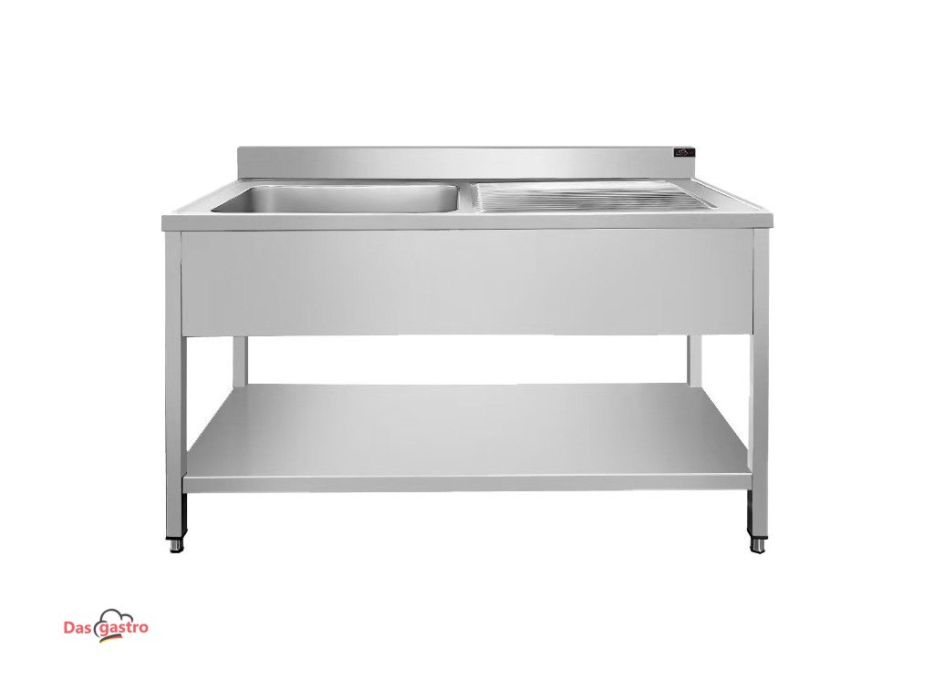 Zlew ze stali nierdzewnej z dolną półką 1,2 m - 1 zlew po lewej stronie, głębokość 60 cm