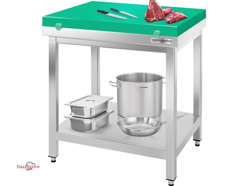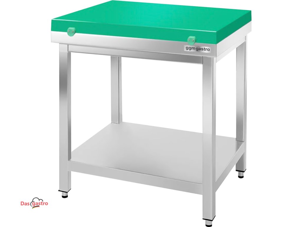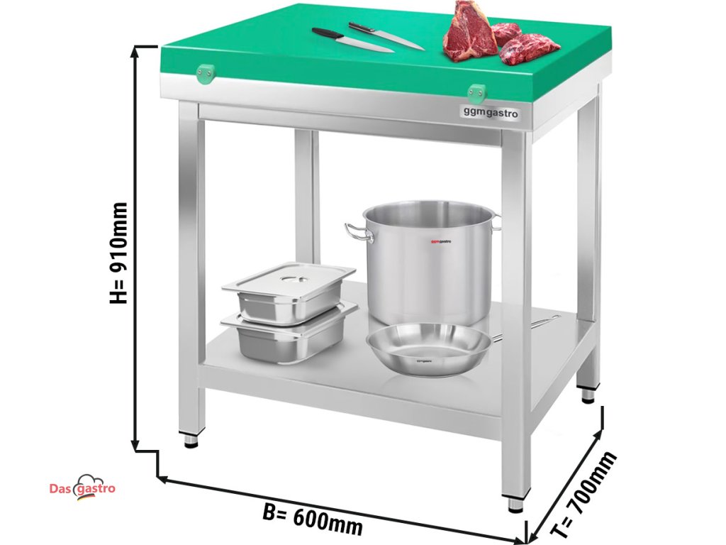 Stół roboczy ze stali nierdzewnej PREMIUM - 600x700 mm - z półką dolną bez panelu tylnego, włącznie z płytą do cięcia