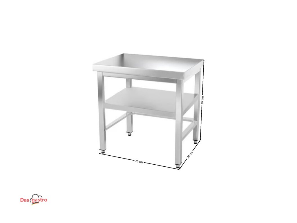 Stół roboczy ze stali nierdzewnej z dolną półką i listwami bez tylnej krawędzi - 700 x 700 x 870 mm